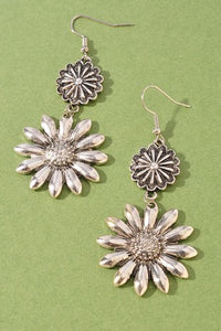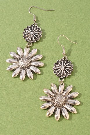 Beautiful Antique silver double daisy earrings. Hangs almost 3 inches long.