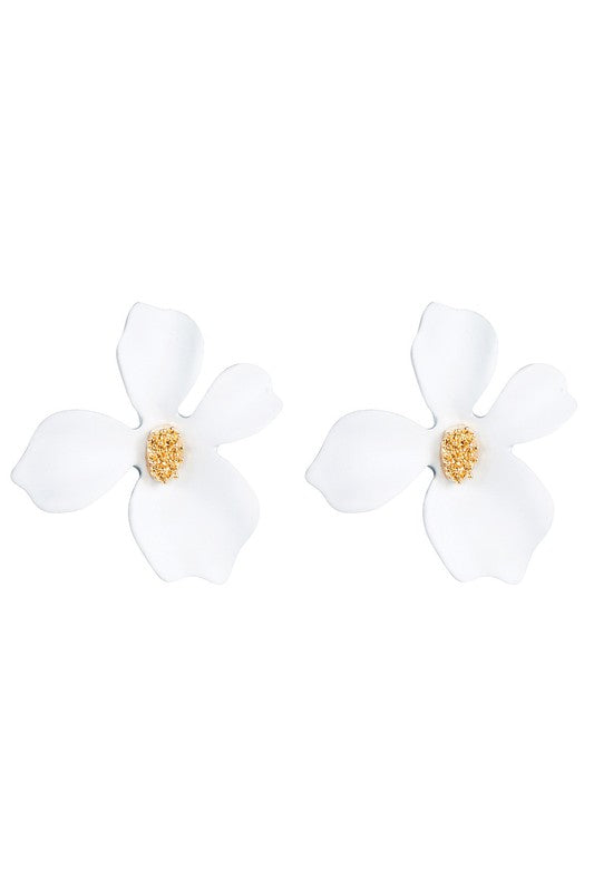 Beautiful and delicate looking stud floral earrings with gold center. About 1 1/4 inch in diameter.