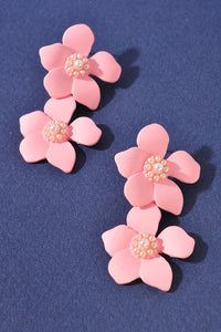 Pearl Center Layered Flower Drop Earrings , beautifully detailed.